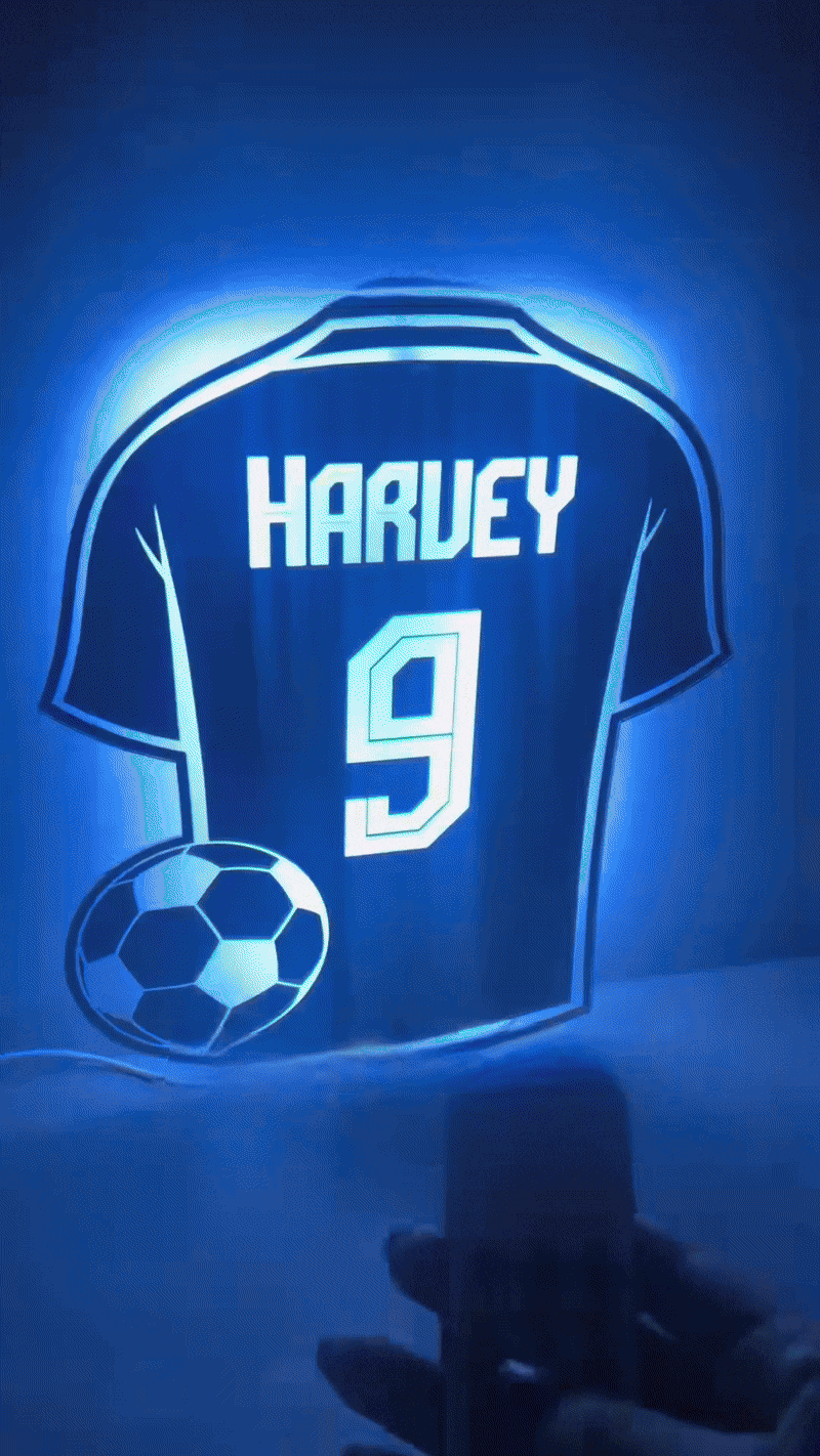 Stwórz dekorację, która od razu przyciąga wzrok! Nasze lustro LED w kształcie koszulki piłkarskiej pozwala wybrać dowolne imię oraz numer, dzięki czemu idealnie dopasujesz je do swojego piłkarza.